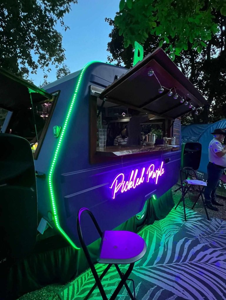 Bar/Drinks: We have a large drinks fridge, wine cooler, 6 optics and an ice maker. We love our locally brewed beers here at Pickled Purple. We can serve a selection of local draft ales and cider, canned beers, ciders and soft drinks, spirits including cocktails and mocktails, plus a range of wines and bubbles. The menu can be adapted to your guests tastes. For winter events we can serve our delicious mulled wine or mulled cider.